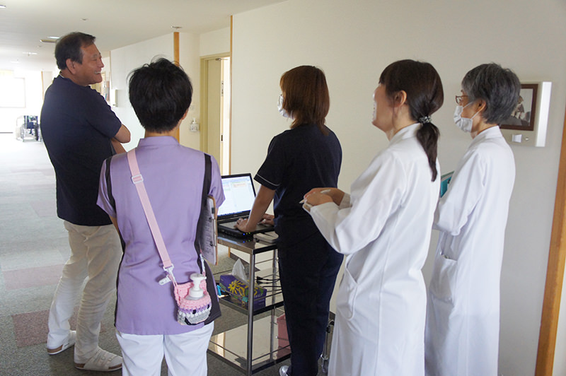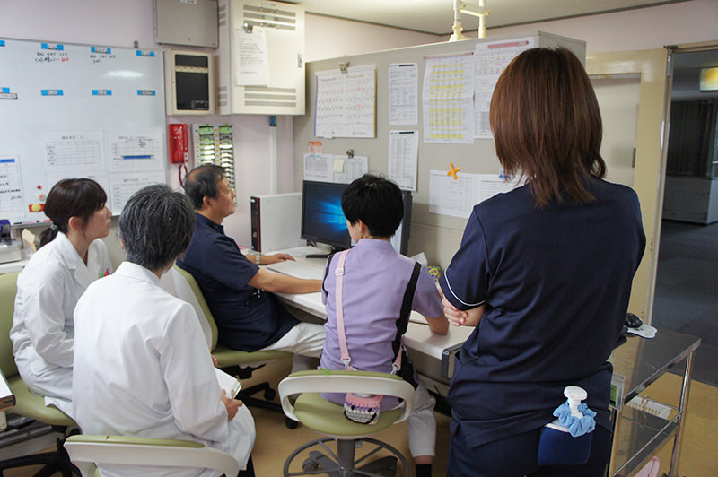 高齢の方も多く、退院時に在宅環境の調整が必要な方も多くいます。そのため、入院された患者さん・ご家族が安心してご自宅や施設に退院できるように退院調整にも力をいれています。医師、看護師、栄養士、理学療法士、MSWなど多職種で定期的にカンファレンスを行い、患者さん・ご家族が、よりよい入院生活を送れ、笑顔で退院できるようにスタッフ一同努力しています。