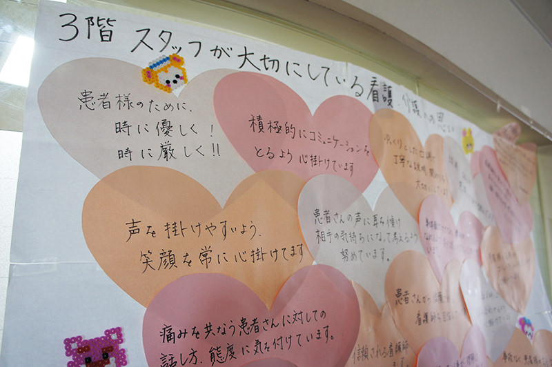 私たちは、患者さんにこの病院に入院してよかったと思っていただけるよう、心のこもった温かい看護を提供することを心掛け、辛い時期に患者様に寄り添えるような看護を目指しています。
